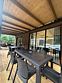 На большой террасе установлены стол и стулья, а также есть место для отдыха на качелях.
