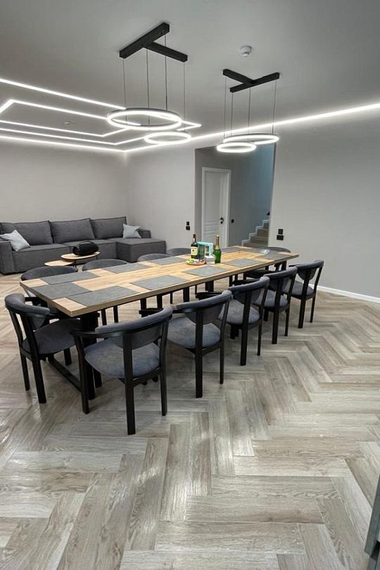 Гостевой дом «Вилла Елена» — это идеальное место для проживания, где уют и комфорт становятся основными акцентами. Просторная гостиная и кухня, продуманные для крупных компаний, приветствуют гостей большим обеденным столом, расположенным у панорамных окон, что позволяет наслаждаться потрясающими видами на горные пейзажи даже во время еды. Здесь каждый сможет найти уголок для отдыха, от большого дивана до удобных кресел, создавая атмосферу, которую по-настоящему хочется назвать домом.