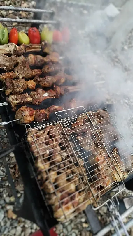 Для любителей кулинарных приключений доступна оборудованная мангальная зона, где можно организовать барбекю под открытым небом, используя шампура и казан. Место идеально подходит для вечерних встреч, когда аромат приготовленных блюд наполняет воздух, а теплый свет огня создает атмосферу уюта и радушия.