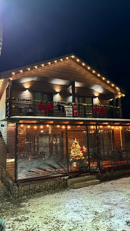 В течение дня вы сможете исследовать горные тропы, кататься на лыжах и наслаждаться живописными водопадами и чистыми озерами. А после насыщенного дня вас ждет терраса, где можно расслабиться с горячим чаем в окружении близких людей, делясь впечатлениями и создавая незабываемые моменты.