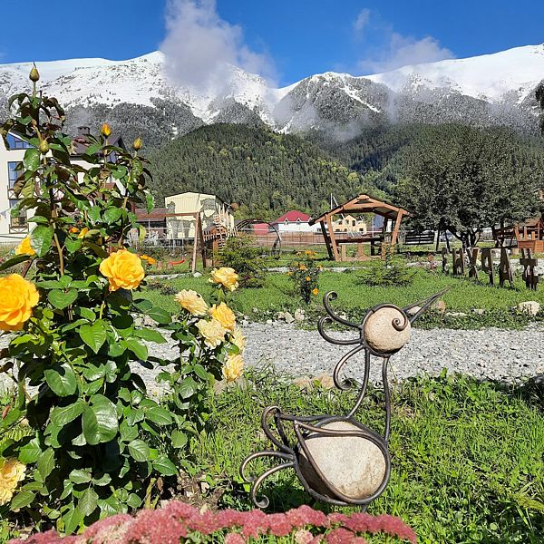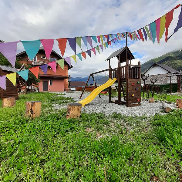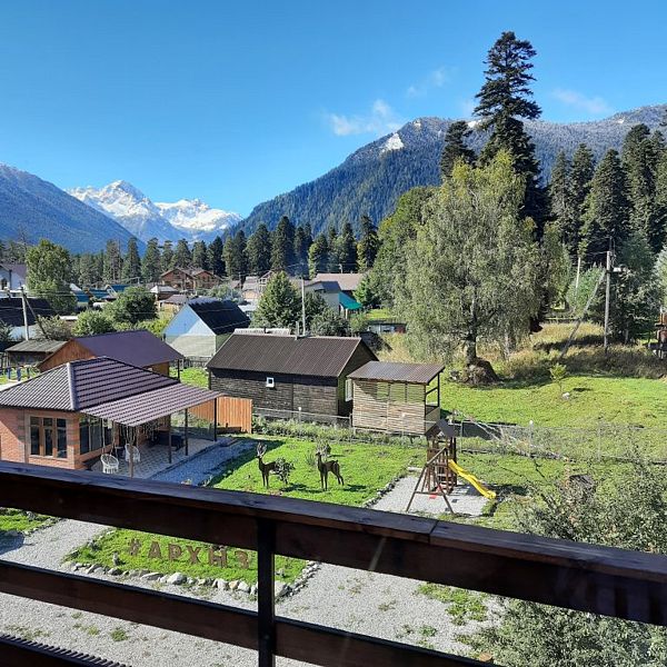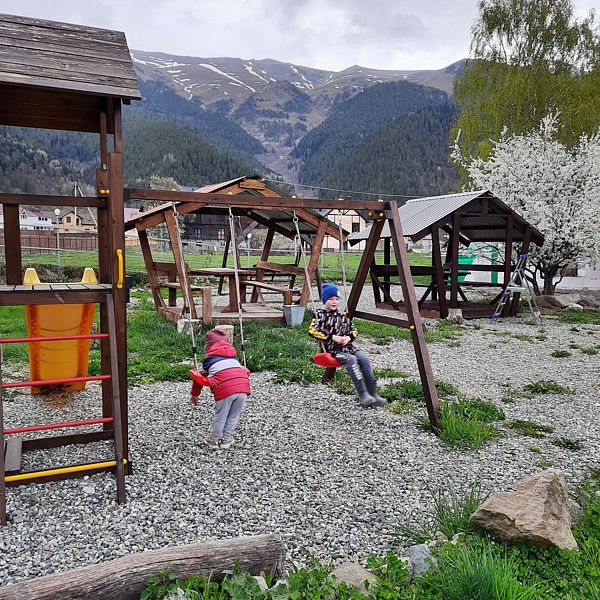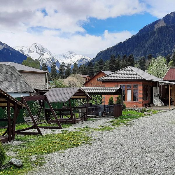 Гостевой дом «Вилла Лиза» — ваш идеальный уголок в горах Архыза, где всегда царит тепло и уют. Удобства включают детскую площадку и зону отдыха с расслабляющими качелями, а также парковку для вашего автомобиля. Вилла располагает просторным солнечным двором с захватывающим панорамным видом на величественные горы, что создает уникальную атмосферу для отдыха на свежем воздухе.