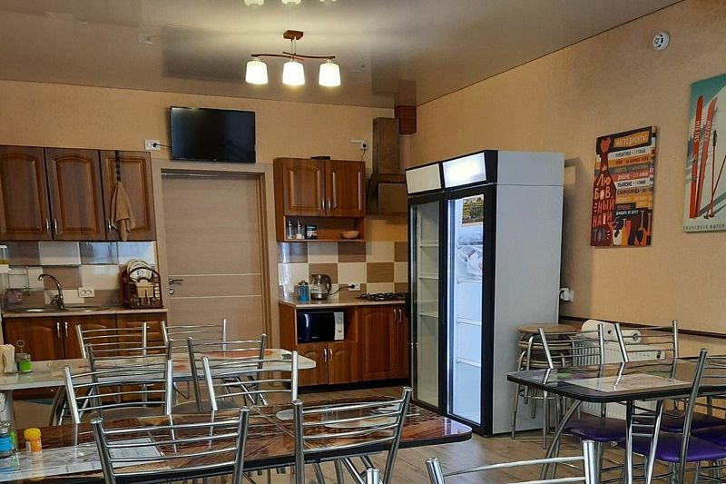 Гости могут воспользоваться общей кухней, которая полностью укомплектована всем необходимым для комфортного приготовления пищи. В этом уютном пространстве вы найдете столы и стулья для непринужденных трапез, а также холодильник, чайник, микроволновую печь и плиту, которые помогут вам создать любимые блюда.