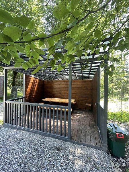 Для больших компаний на территории предусмотрена беседка на 10 посадочных мест.