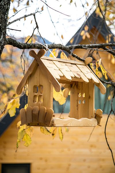 Напротив детской площадки для родителей предусмотрены качели. В весенне-летний период рядом протекает горный ручей, под шум которого можно расслабиться и отдохнуть.Качели