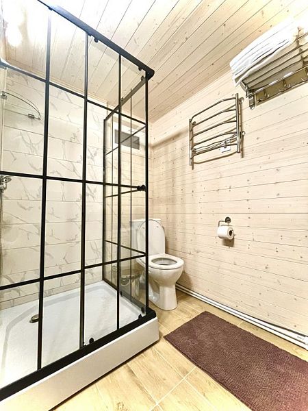 Баня вместимостью до 6 человек. Внутри: парилка, душевая с колобком и зона отдыха.