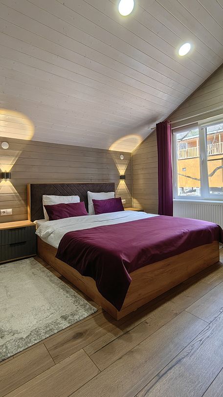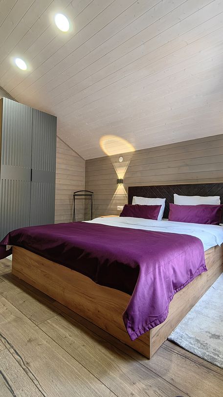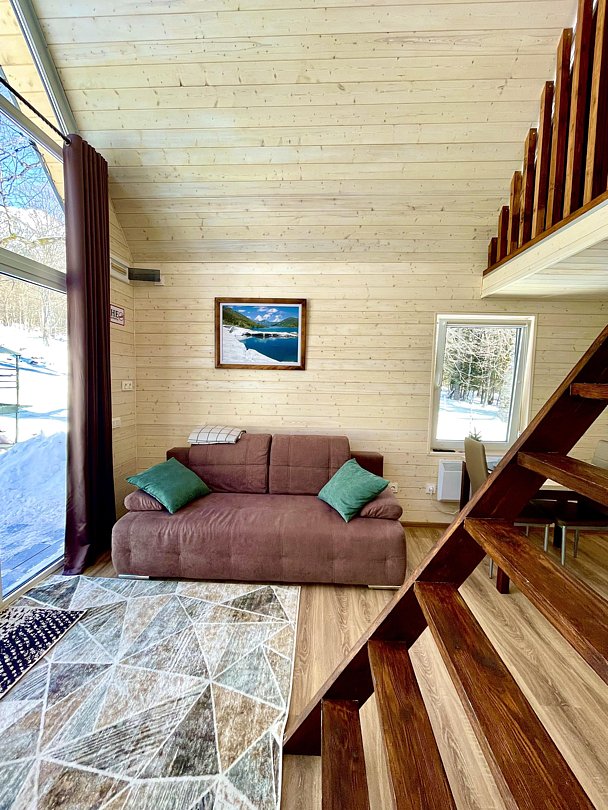 Апартаменты предназначены для проживания до 6 человек, располагаются на втором этаже с отдельным входом на личную террасу с панорамным видом на горы.