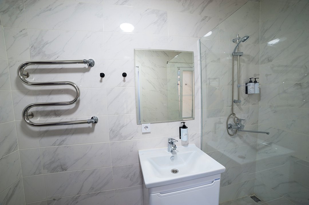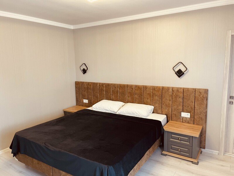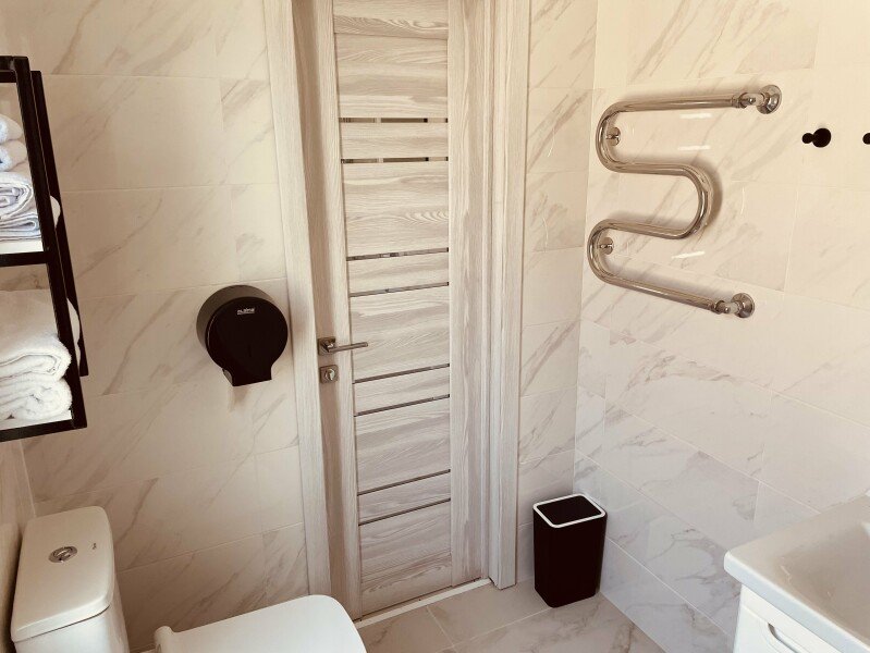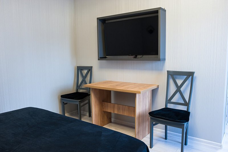 В номере установлен телевизор, холодильник для хранения продуктов, а также сплит-система для поддержания оптимальной температуры. Для удобства гостей предусмотрен электрический чайник. Собственная душевая комната укомплектована полотенцами для бассейна, для душа, рук и ног, а также шампунем, жидким мылом и гелем для душа. При аренде данного номера гостю предоставляется: бесплатная парковка, пользование бассейнами, мангальной зоной, зоной SPA (сауной/хаммамом).