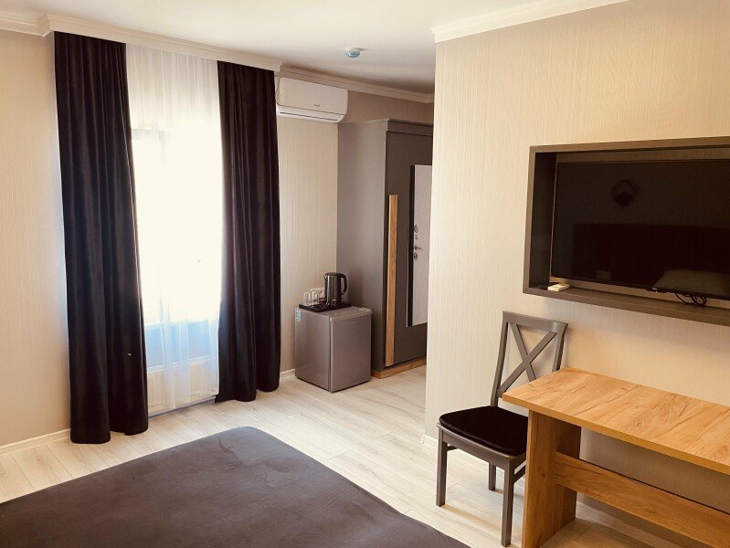 В отличии от номеров категории Стандарт, номера данной категории расположены ближе к бассейну, вид из окна на внутренний двор. В номере установлен телевизор, холодильник для хранения продуктов, а также сплит-система для поддержания оптимальной температуры. Для удобства гостей предусмотрен электрический чайник. Собственная душевая комната укомплектована полотенцами для бассейна, для душа, рук и ног, а также шампунем, жидким мылом и гелем для душа. При аренде данного номера гостю предоставляется: бесплатная парковка, пользование бассейнами, мангальной зоной, зоной SPA (сауной/хаммамом)/