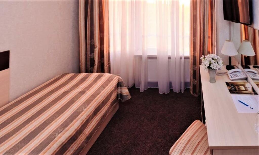Однокомнатный улучшенный номер с односпальной кроватью и удобной рабочей зоной.