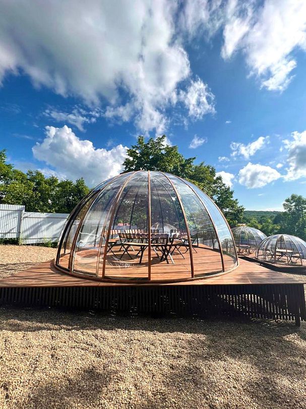 В теплое время года беседки укроют вас от дождя и ветра. Прозрачный купол позволит наслаждаться природой в любую погоду.