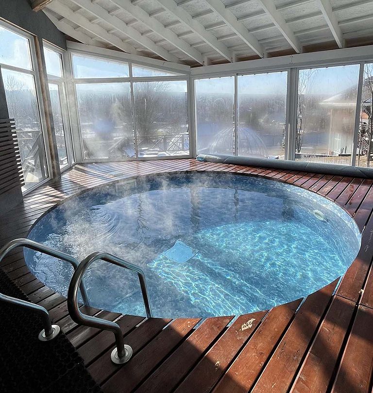 Вы сможете посетить настоящую русскую баню на дровах с отличной парной, просторной комнатой отдыха – столовой и искупаться в бассейне.