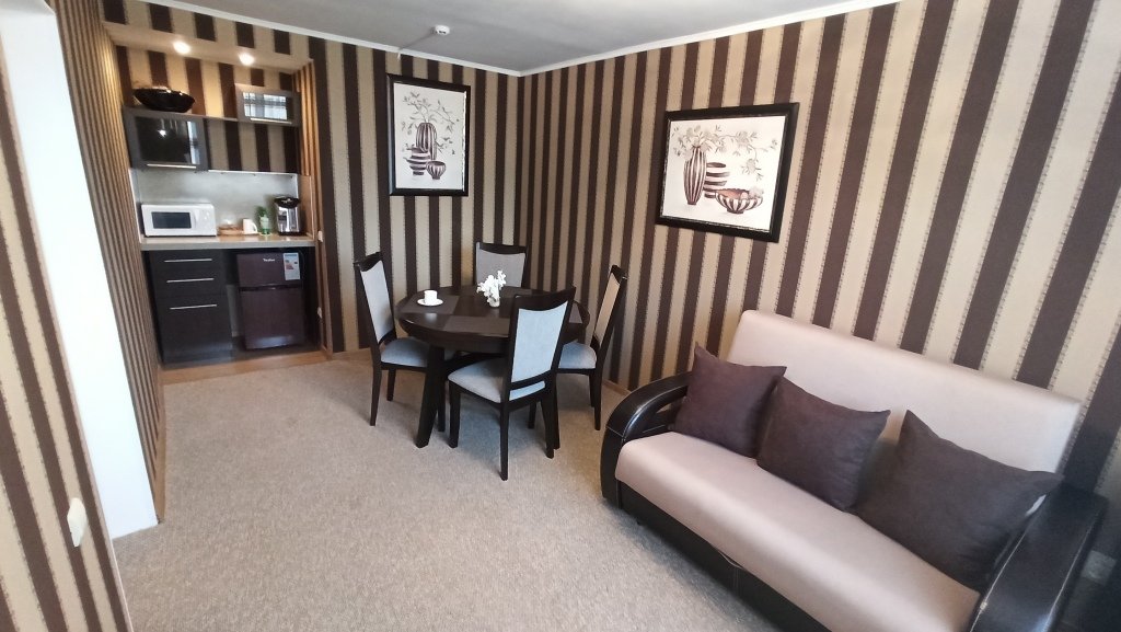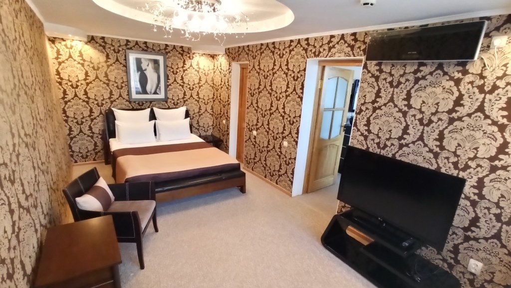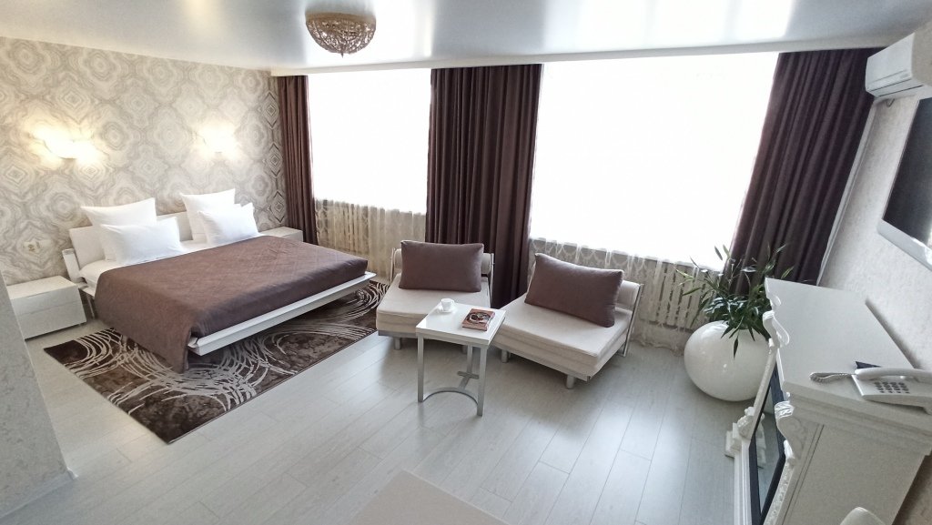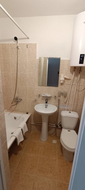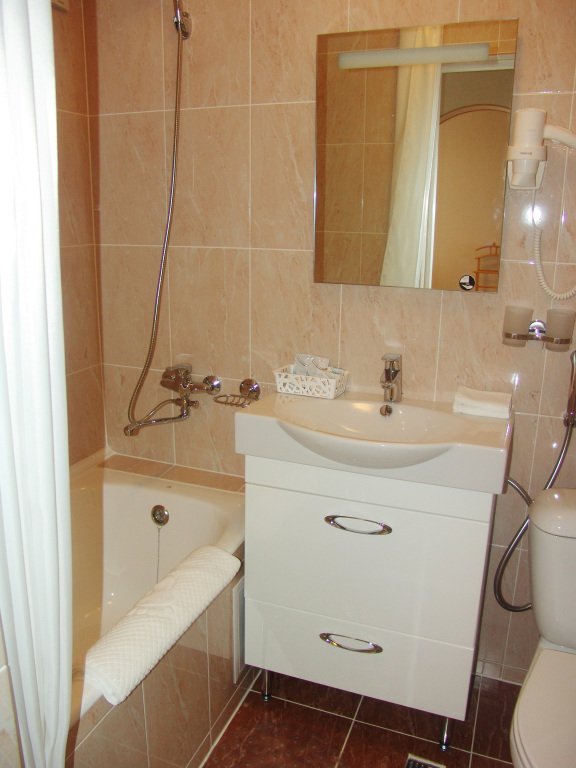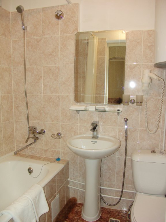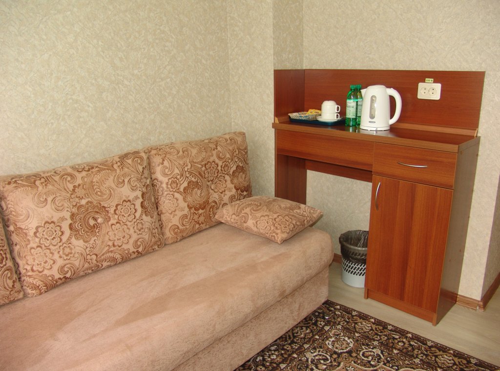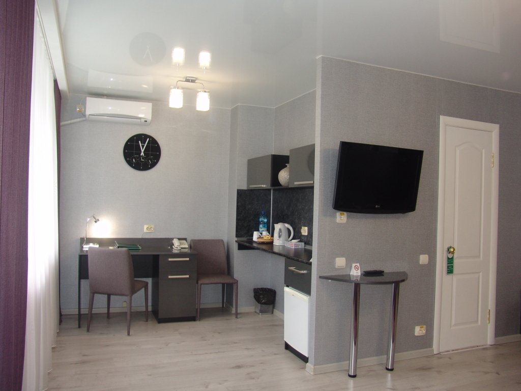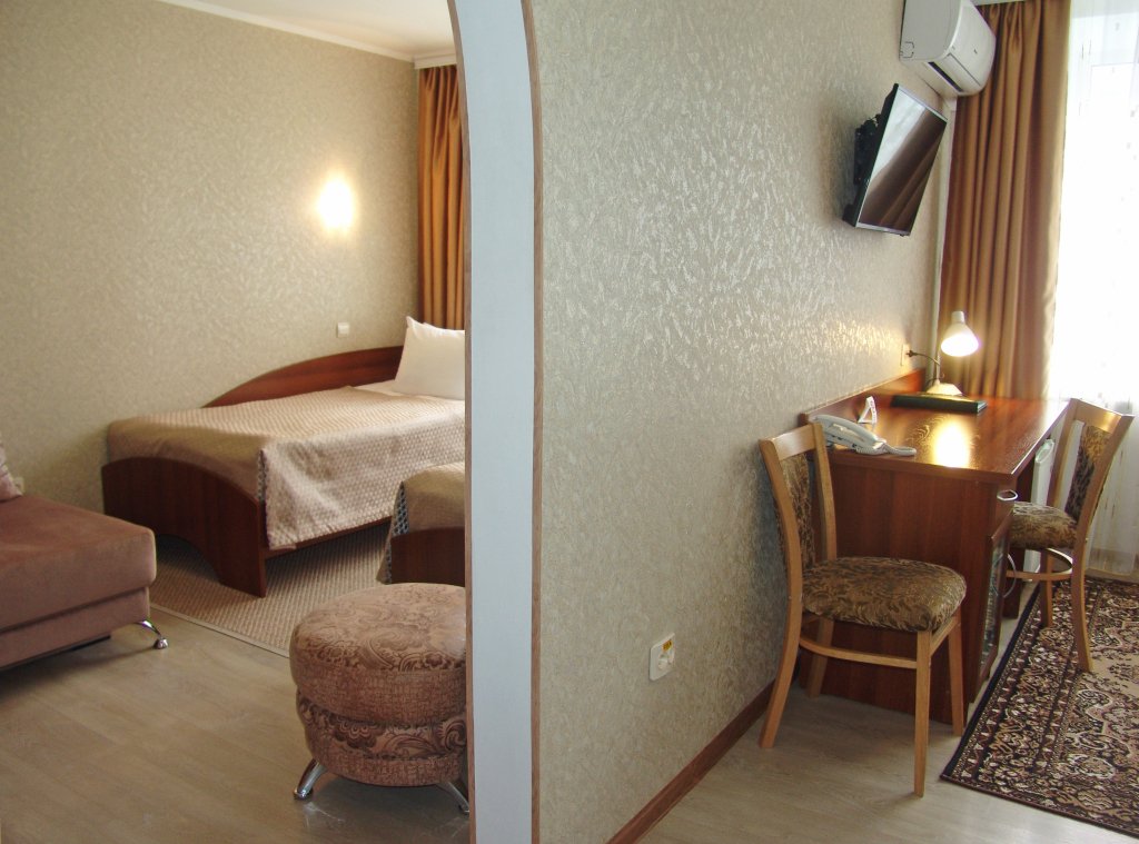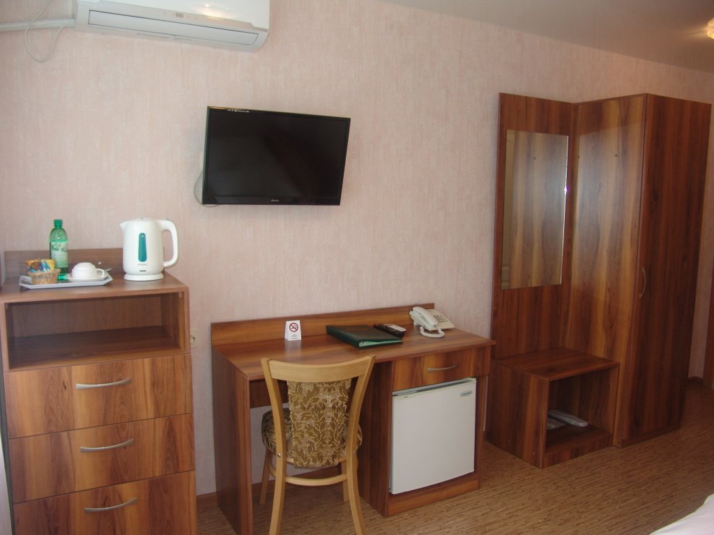 В номере есть всё необходимое: санузел и душевая, фен и гигиенические принадлежности, телевизор, холодильник, кондиционер, халат и тапочки. Перечисленные услуги имеются в номерах повышенной комфортности.