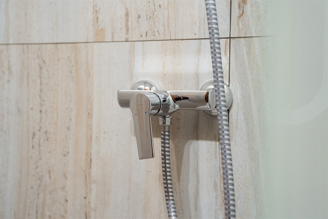 телевизор, Wi-Fi, светильник, фен, душевая кабина, тапочки, балкон с красивым видом, терраса, двуспальная кровать, стулья, вешалки, зеркало, унитаз, раковина, вид во двор, мини-холодильник, гостиничная парфюмерия, вид на горы, вид на бассейн, мыло, окна от пола до потолка, международная розеткаВ номере
