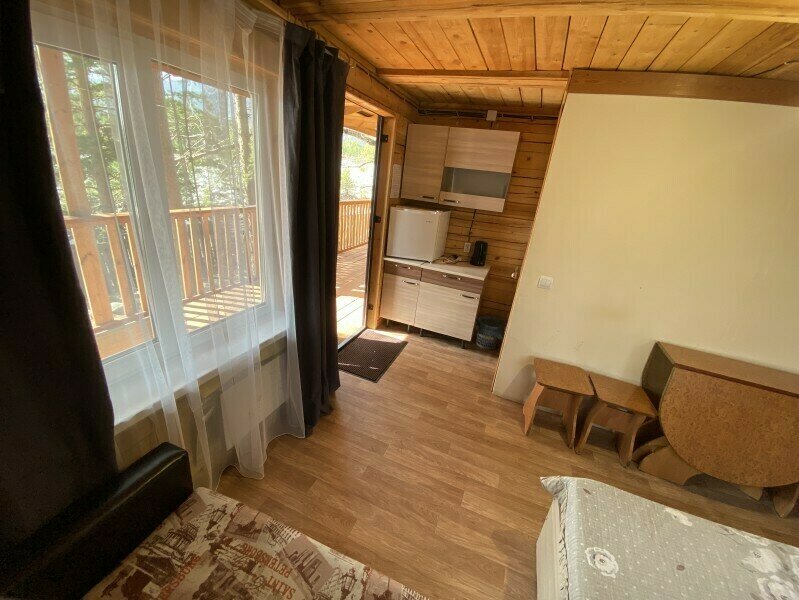 Для проживания доступны благоустроенные дома с собственной кухней: «Малый семейный», «Большой семейный» и «Большой семейный плюс», каждый из которых с отдельным входом и оборудован санузлом, телевизором с 20 каналами и всем необходимым для комфортного проживания. С балкона и окон открывается прекрасный вид на реку и горы.