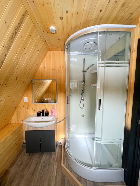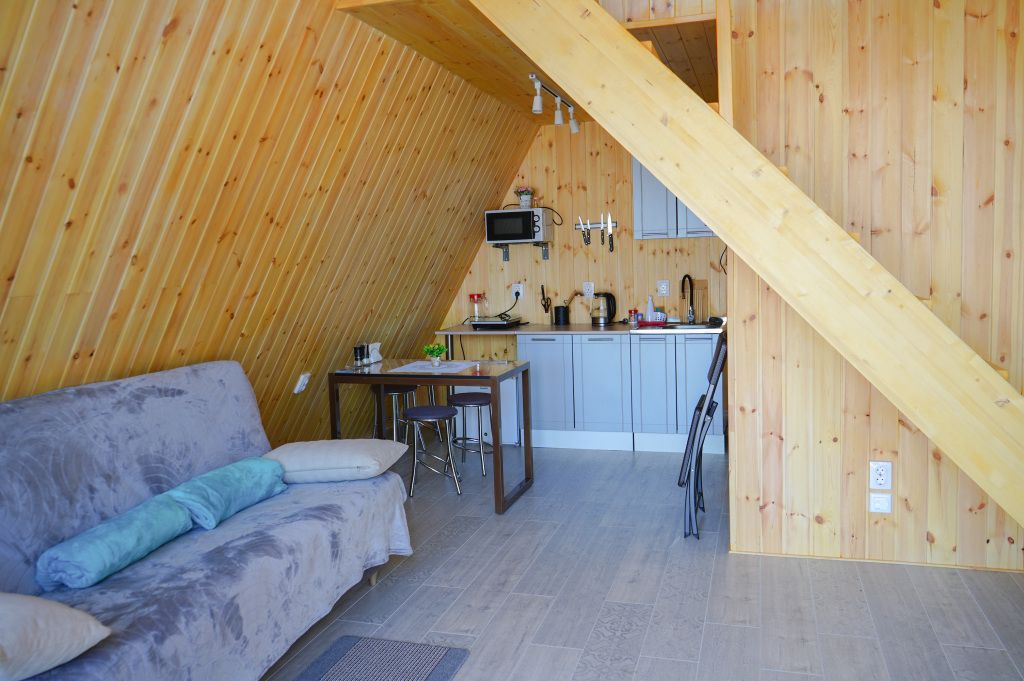 Все дома являются благоустроенными с панорамными окнами. В номере есть телевизор. Оснащение зависит от выбранной категории проживания.