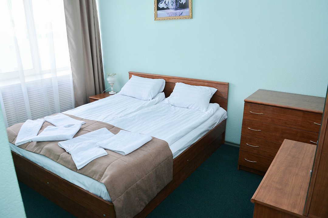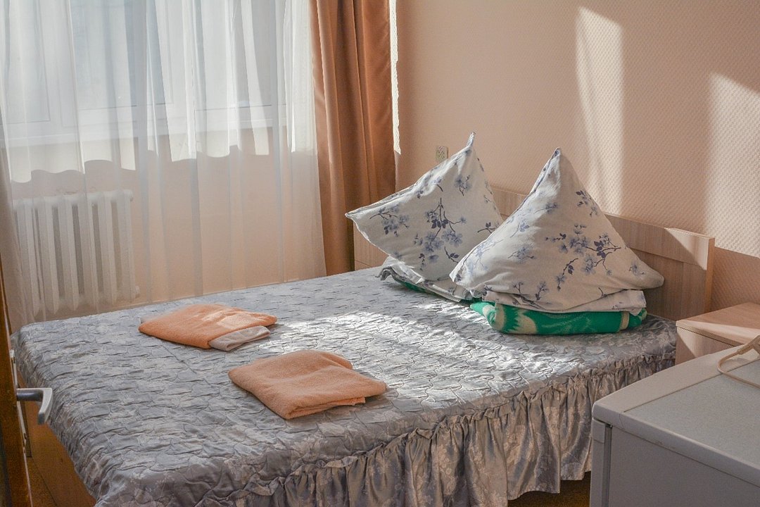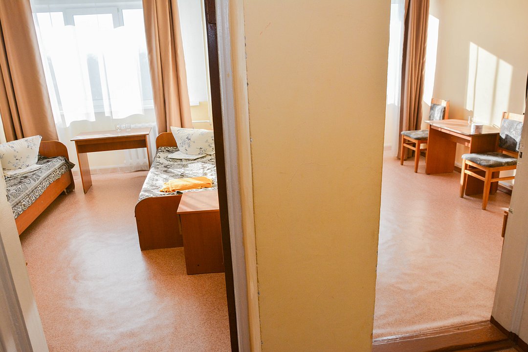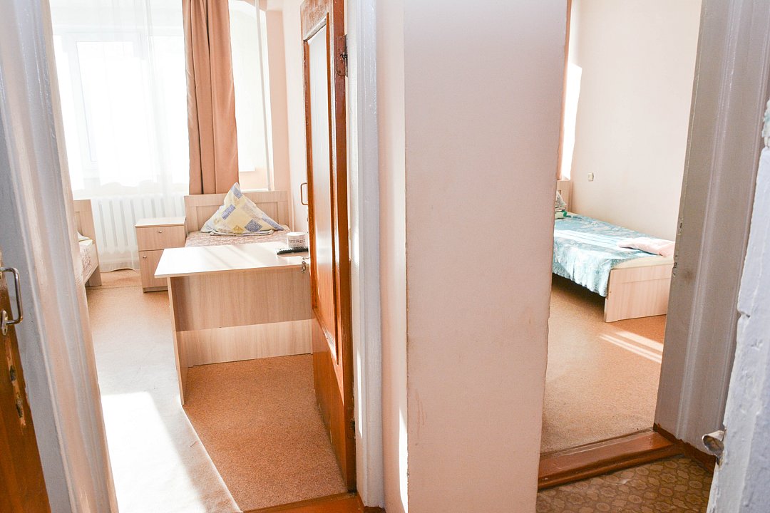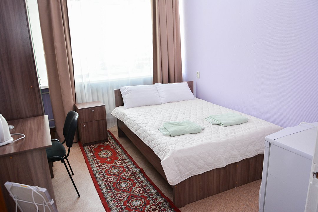 Небольшой удобный номер, состоящий из одной жилой комнаты с двумя односпальными кроватями. Имеется ванная комната в блоке из двух номеров, общий коридор. Номер рассчитан на проживание двух человек с подселением. Расположение: Корпус Саяны.
