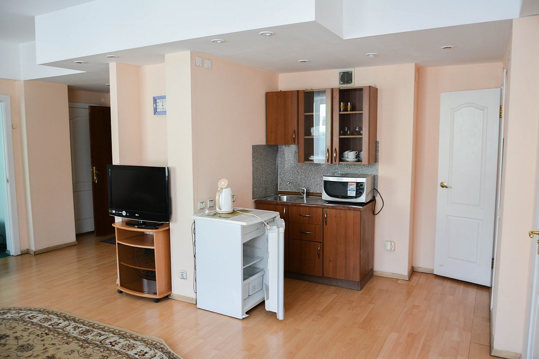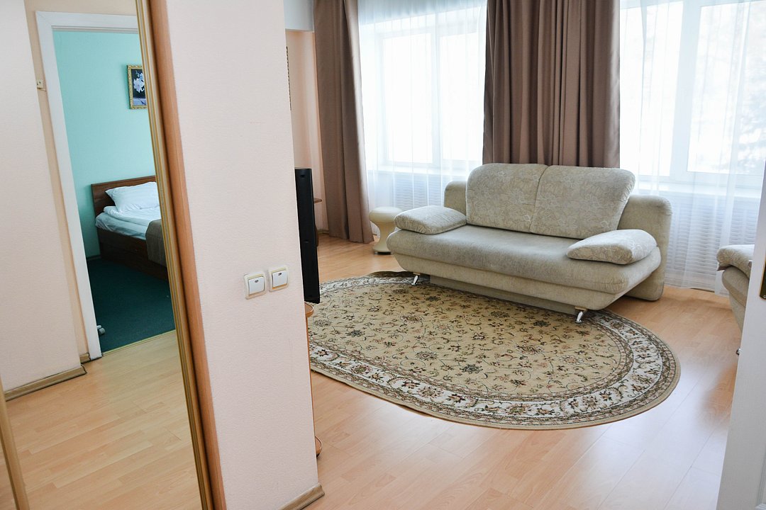 Замечательный вариант для отдыха с близкими. Номер состоит из двух жилых комнат — гостиной и спальни небольшого коридора и собственной ванной комнаты. Расположение: Корпус Саяны.