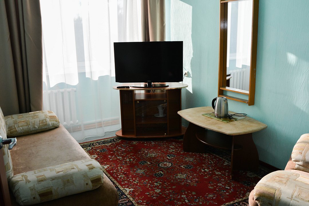Оптимальный вариант для бюджетного отдыха компанией! Номер рассчитан на проживание трех человек в двух уютных комнатах, объединенных общим коридором и санузлом. Расположение: Корпус Саяны.