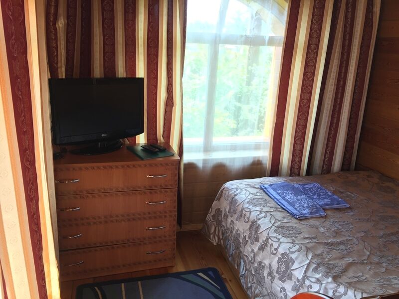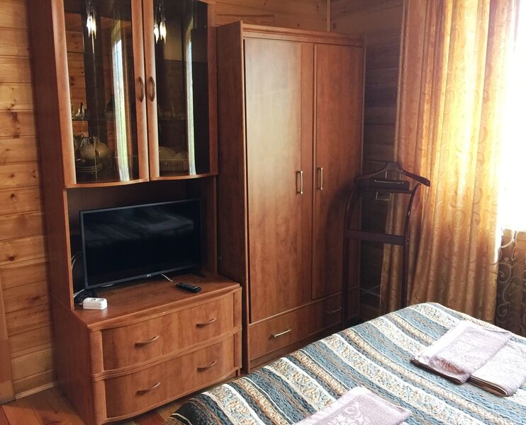Отделка деревом, двуспальная кровать, TV, холодильник эл. чайник с чайными приборами, с/у с ванной, меблировка. Расположение второй этаж. 3700 Трехместный номер. 3-х местный номер, отделка деревом, двуспальная кровать, диван, TV.холодильник, эл.чайник, посуда, с/у с ванной, меблировка. Первый этаж. 5500 Трехместный номер семейный. Большой 3-х местный номер в деревянном исполнении, Две двуспальных кровати. Диван, TV, холодильник, эл. чайник, посуда, меблировка. С/у с ванной. 5900 Шестиместный номер. Большой 6-ти местный номер в деревянном исполнении, 2 комнаты‚ TV, в каждой комнате, холодильник, эл. Чайник, посуда, меблировка(семейная кровать. Диван. Две односпальные кровати.) 8200 Люкс Большой номер в деревянном исполнении. 2 комнаты. Итальянская мебель. TV в двух комнатах в одной смарт TV. Холодильник, набор посуды. Обеденная группа. С/у с ванной. (на троих человек) 7200 В каждом номере возможна установка дополнительного спального места стоимостью 850 руб.