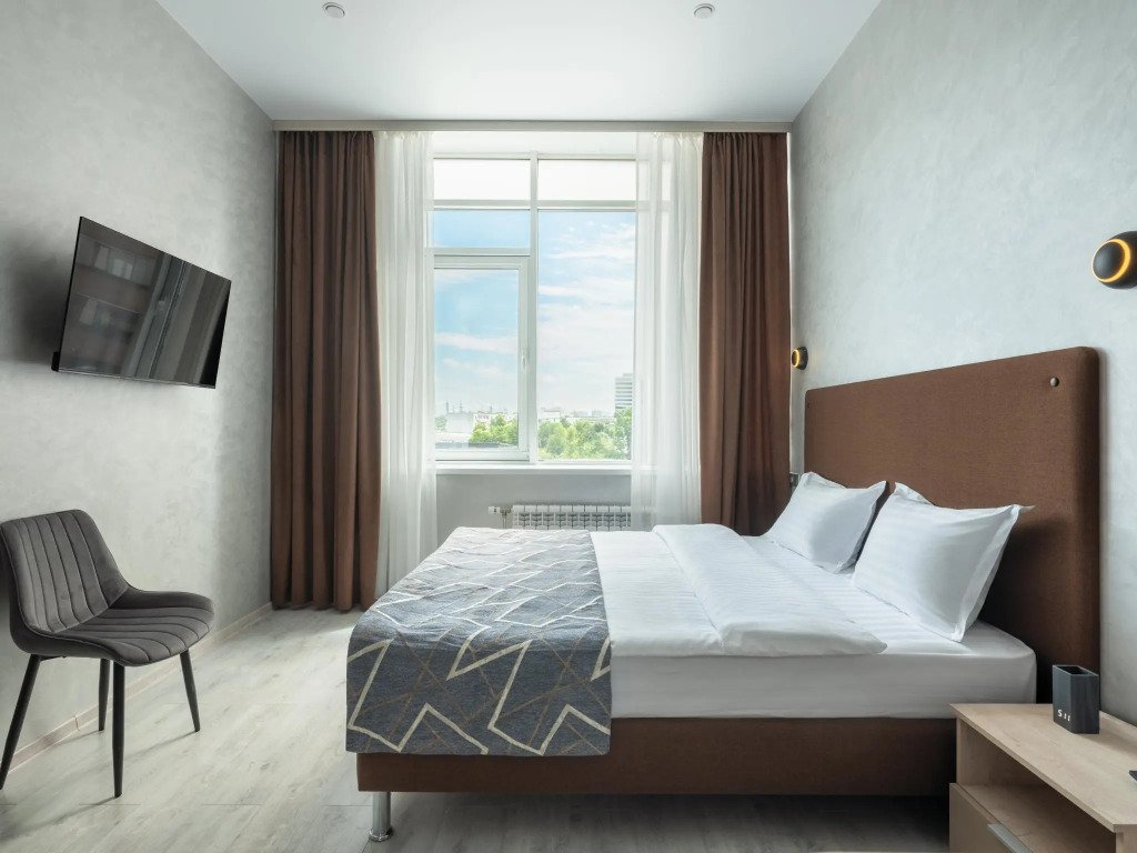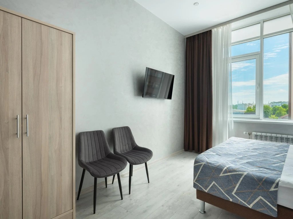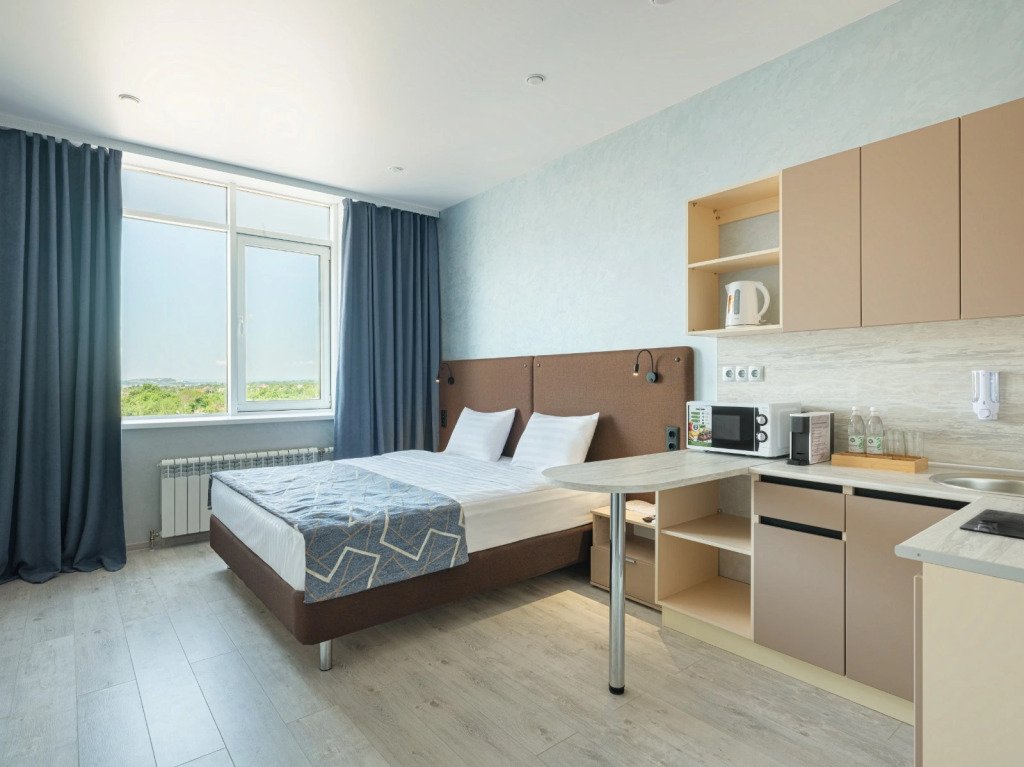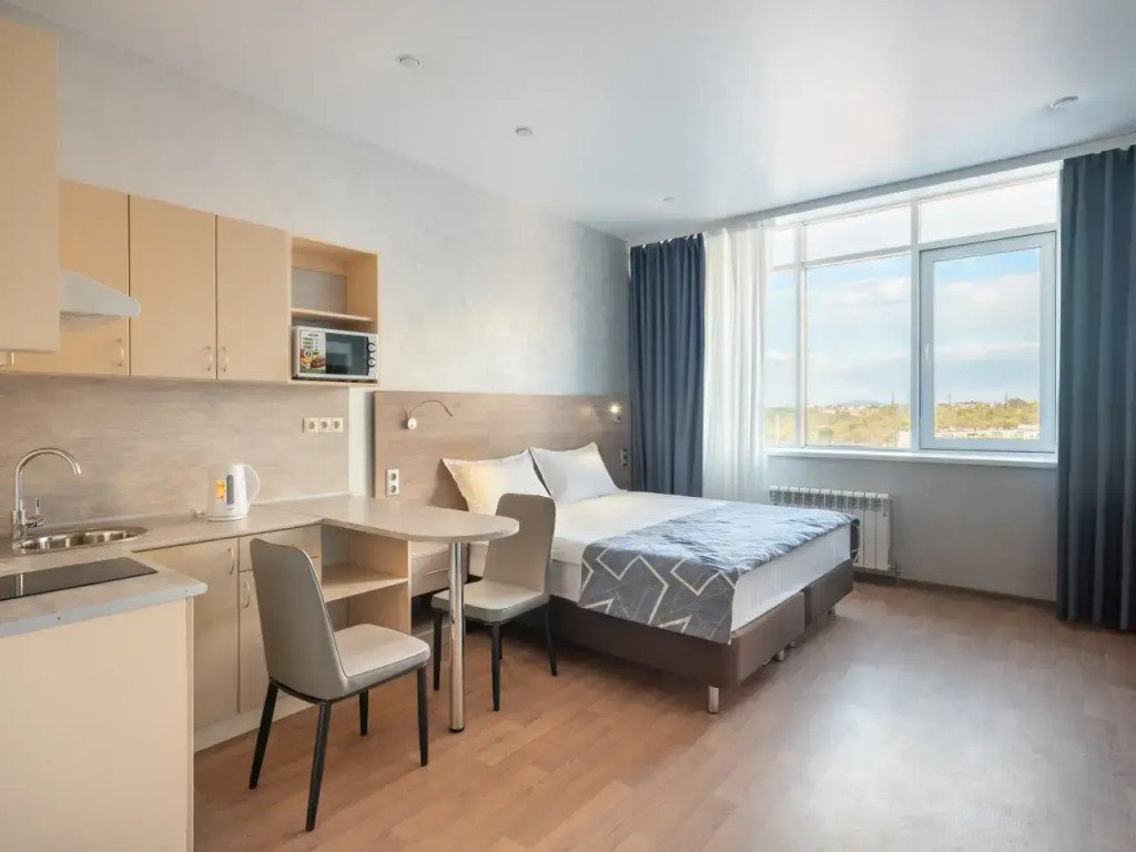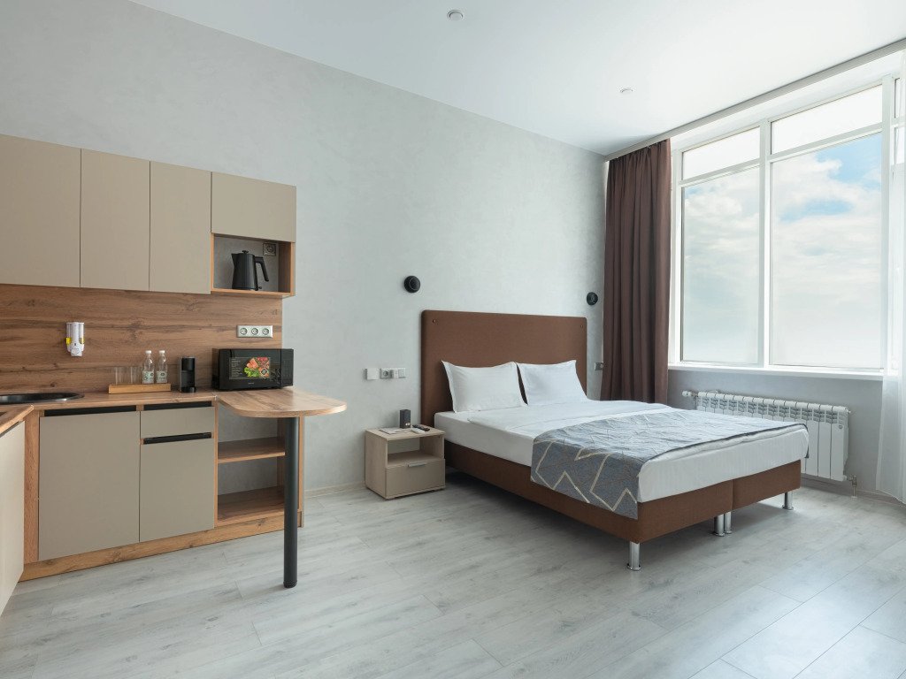 Двухместная студия с красивым видом из окна двуспальная кровать