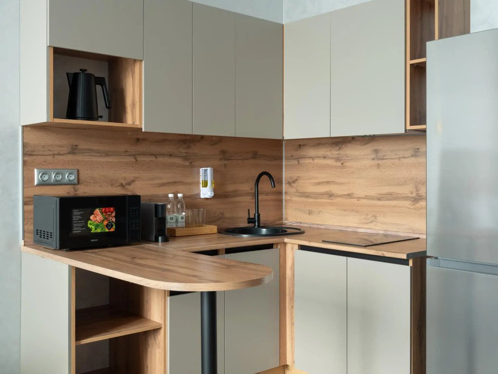 Во всех номерах есть кухня с бытовой техникой и посудой для приготовления и приёма пищи, обеденная зона, стиральная машина, косметические принадлежности и халат.