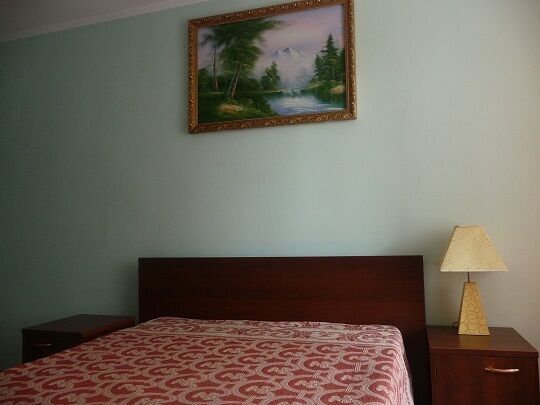 Каждый номер состоит из двух комнат : гостиная (мягкий уголок, телевизор, холодильник, чайник и т.д) и спальня (двуспальная кровать, тумбочки, шкаф для одежды), выход на балкон, санузел (туалет, раковина, ванна, горячая и холодная вода).