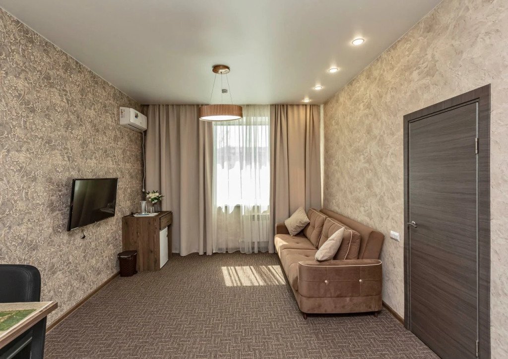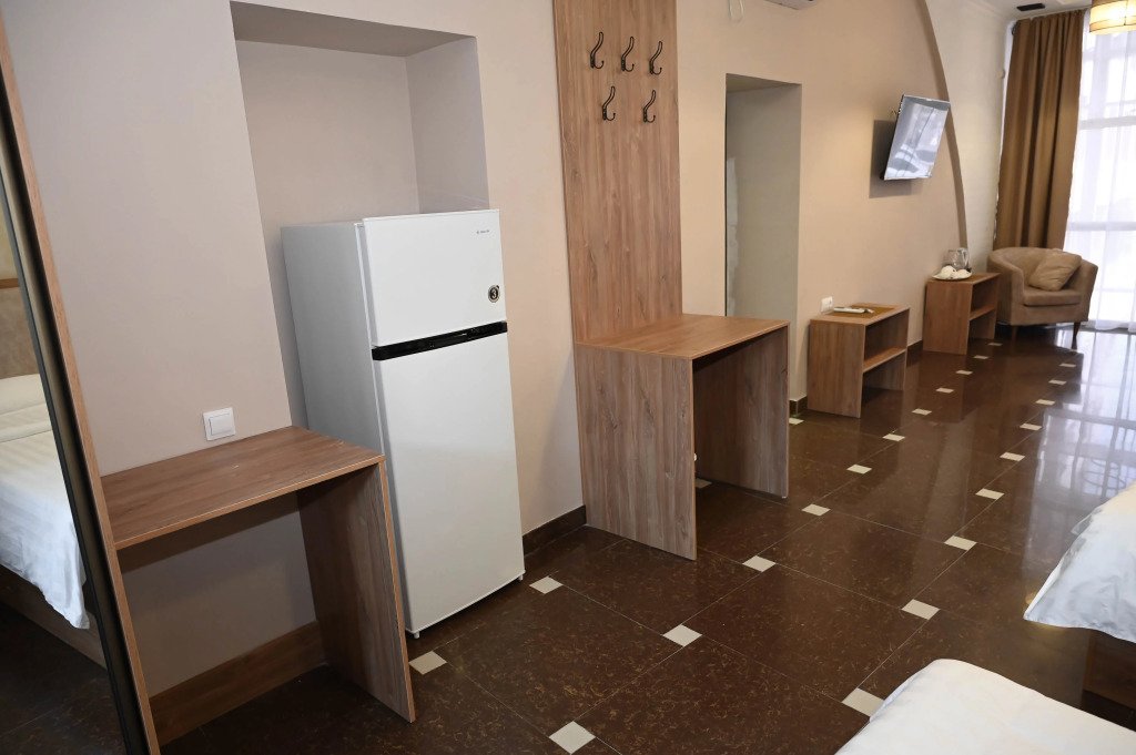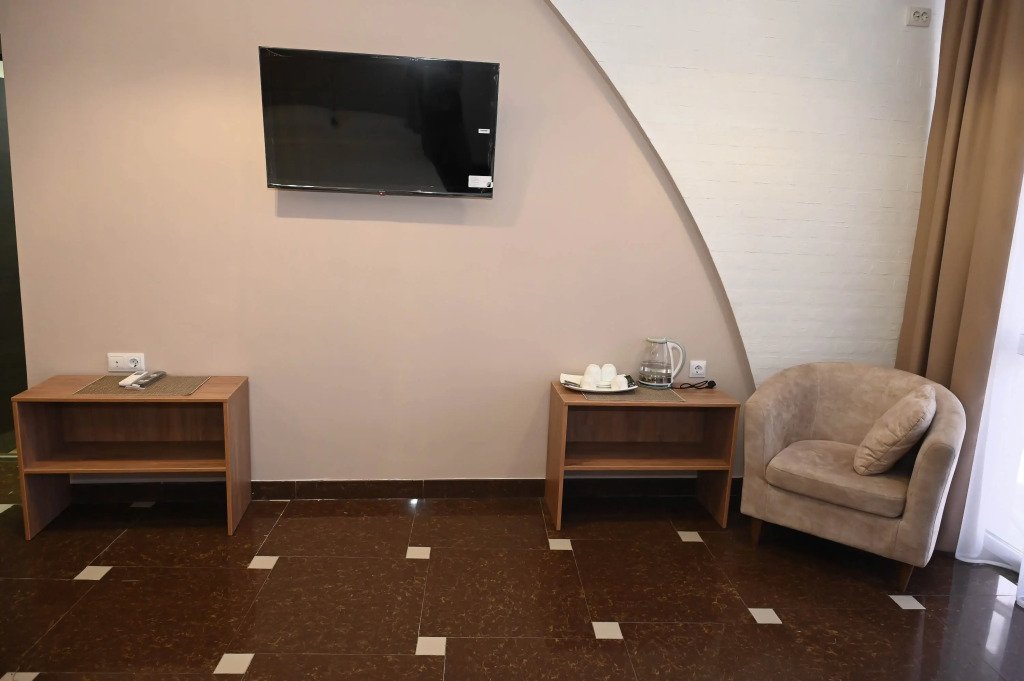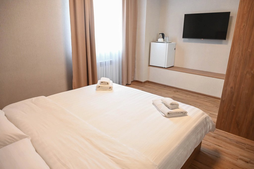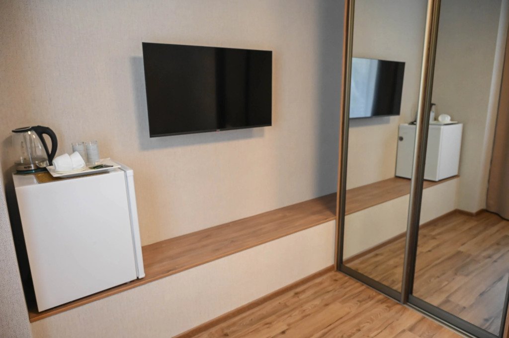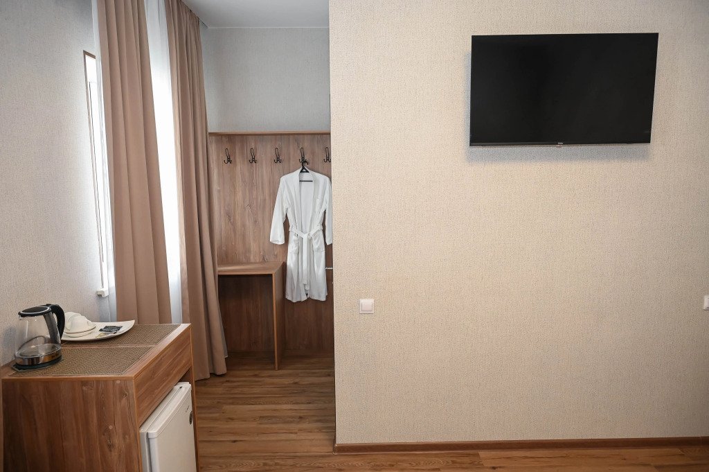 Чтобы вы могли отдохнуть после долгого дня, в номере есть телевизор и халат. Оснащение зависит от выбранной категории номера.