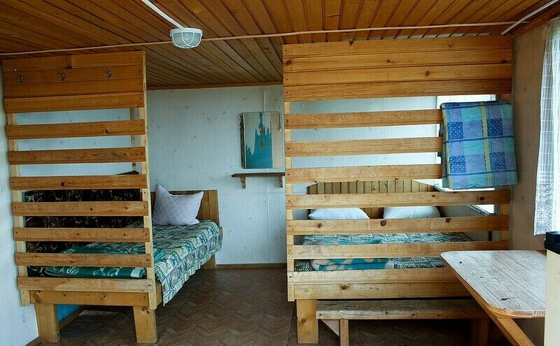 - Внутри домиков установлены полутораспальные кровати, вешалка, стол.