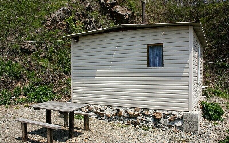 - Рядом с каждым домиком оборудована пикниковая зона со стационарными столом и мангалом.