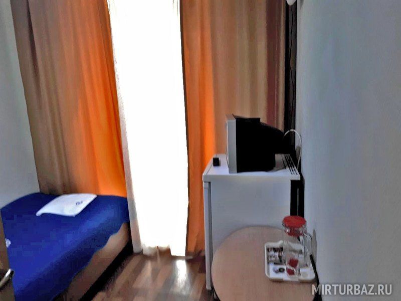 Номер одной полутороспальной кроватью. В номере есть большая лоджия.