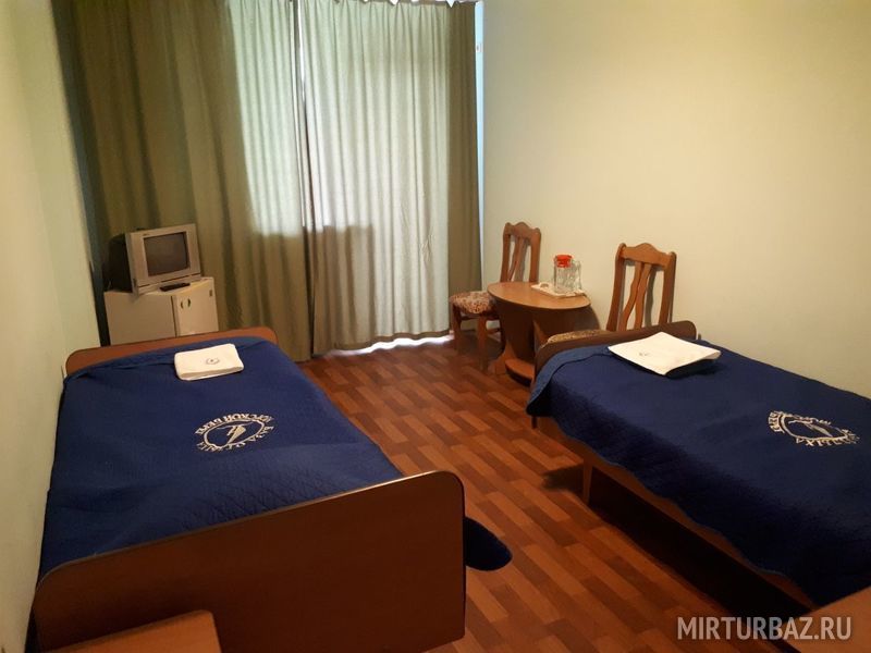Номер с двумя полутороспальными кроватями. В номере есть большая лоджия.