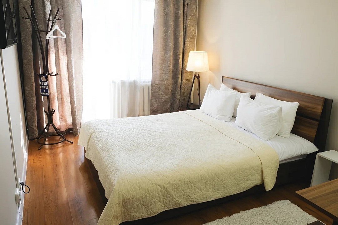 кровать «Queen size», ТВ, холодильник, кондиционер, фен, микроволновая печь, плита, чайник, стиральная машина, халат, тапочки, с/у с душем