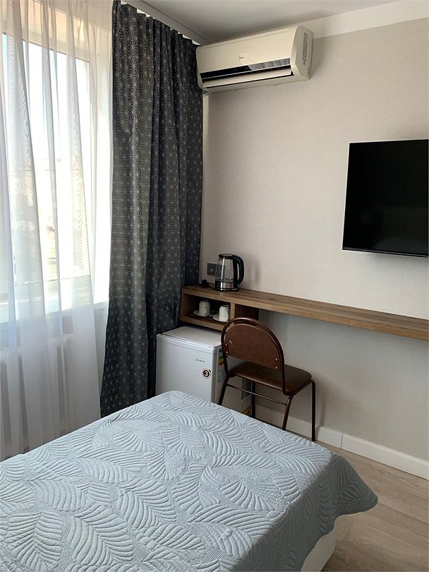 Светлый номер с современным минималистичным интерьером для комфортного проживания 1-2 человек. В номере есть все необходимое для спокойного отдыха: удобная кровать, телевизор с плоским экраном, кондиционер, ванная комната. Окна выходят на уютный внутренний двор гостиницы.Услуги и удобства