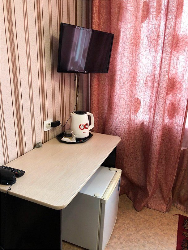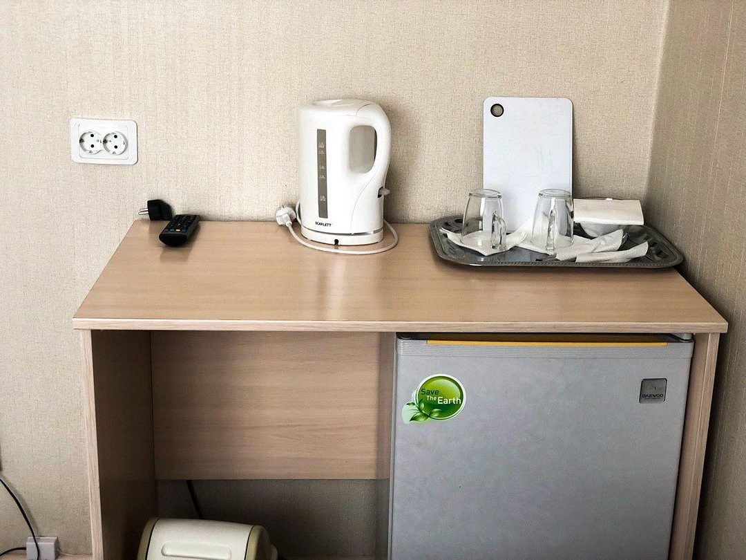 Wi-Fi, кондиционер, светильник, ванная комната, халаты, тапочки, гигиенические средства, две односпальные кровати, зеркало, чайный набор, чайник, унитаз, вид на город, кулер на этаже, вид во двор, стул, туалетные средства, внутренний телефон, мини-холодильник, телевизор со Smart TV, вешалки-плечики, мылоВ номере