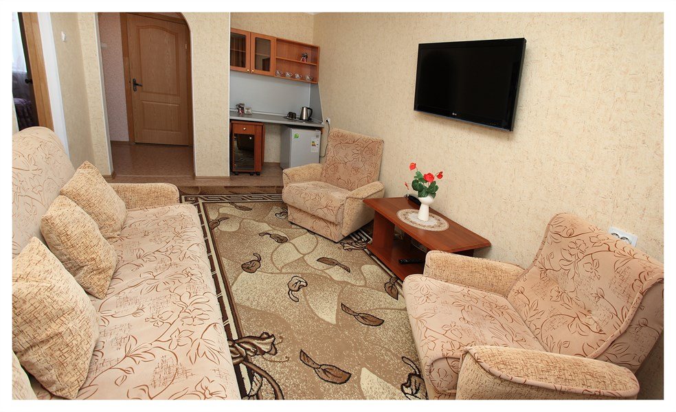 Просторный номер со спальней и зоной отдыха отлично подойдет для семьи из нескольких человек или компании друзей. В номере — уютная спальня с большой двуспальной кроватью, телевизором и шкафом-купе, гостиная с дополнительным спальным местом — удобным диваном. Предусмотрены все необходимые косметические принадлежности, есть кондиционер и бесплатный Wi-Fi.Услуги и удобства
