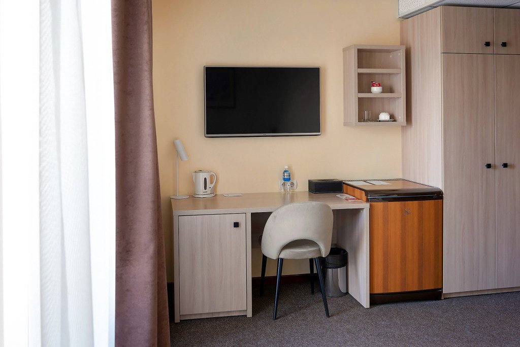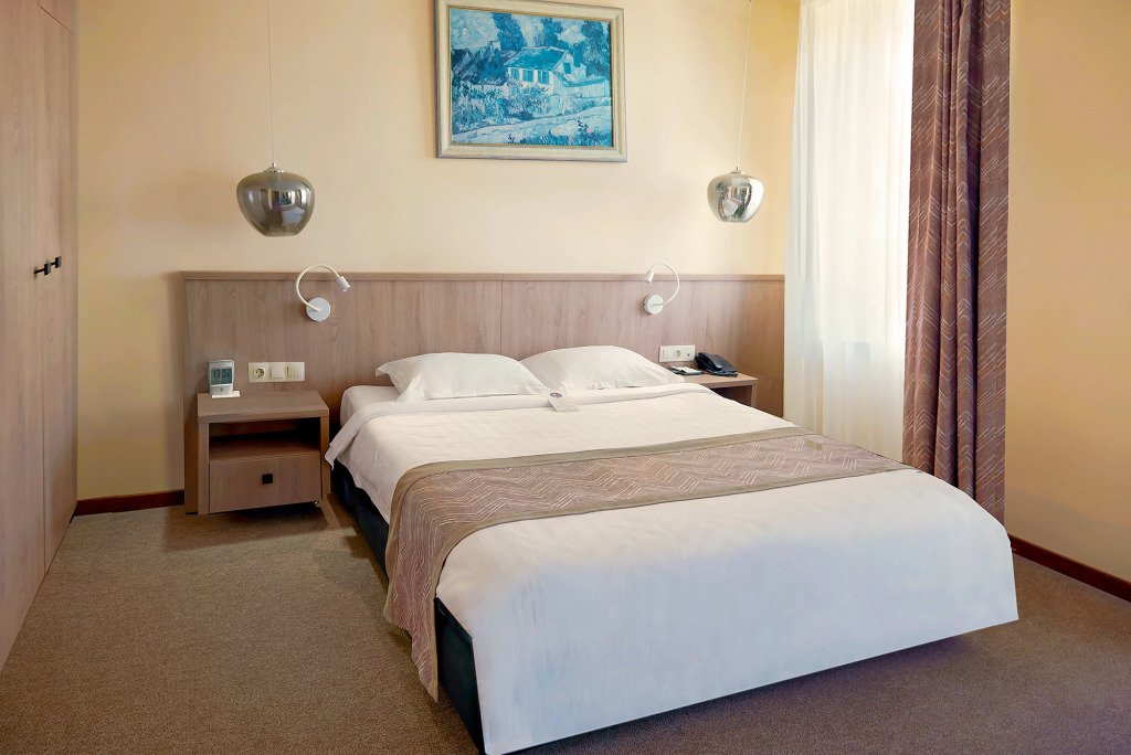 Удобства в номерах включают в себя: место для отдыха и работы, затвор на электронный замок, конвектор с регулятором температуры, спутниковое телевидение (LED ТВ диагональю 43 дюйма) c международными каналами, телефон с прямым международным выходом, индивидуальный сейф, фен, мини-бар, набор посуды, электрический чайник, будильник, беспроводной Интернет. В отдельной ванной комнате — разовые принадлежности: шапочка для душа, мыло, шампунь, гель для душа, расческа, бритвенный станок, зубной набор. В номерах гостям предоставляются разовые тапочки и халат, чай, кофе, сахар, сливки, бутилированная вода 0,5 л. Во всех комнатах центральное кондиционирование и отопление. По желанию в двухместных номерах и полулюксах можно установить одну дополнительную кровать за отдельную плату.