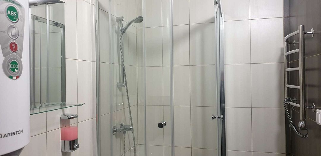 две односпальные кровати, с/у душ.кабина, ТВ, общая кухня