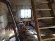 Двуспальная кровать из массива дерева на чердаке, грубая деревянная мебель, самодельные перила лестницы, и имитация домотканых половичков помогут прочувствовать атмосферу настоящей лесной избушки.