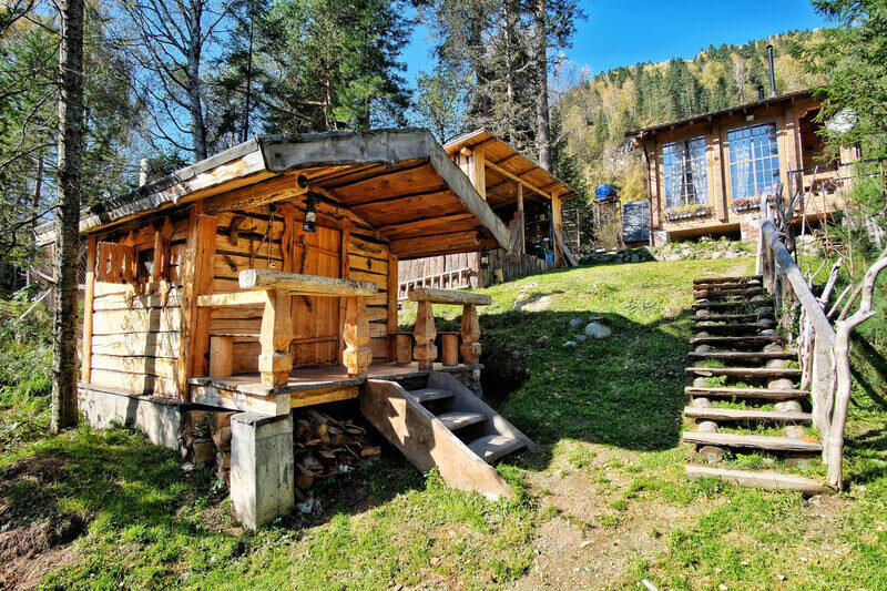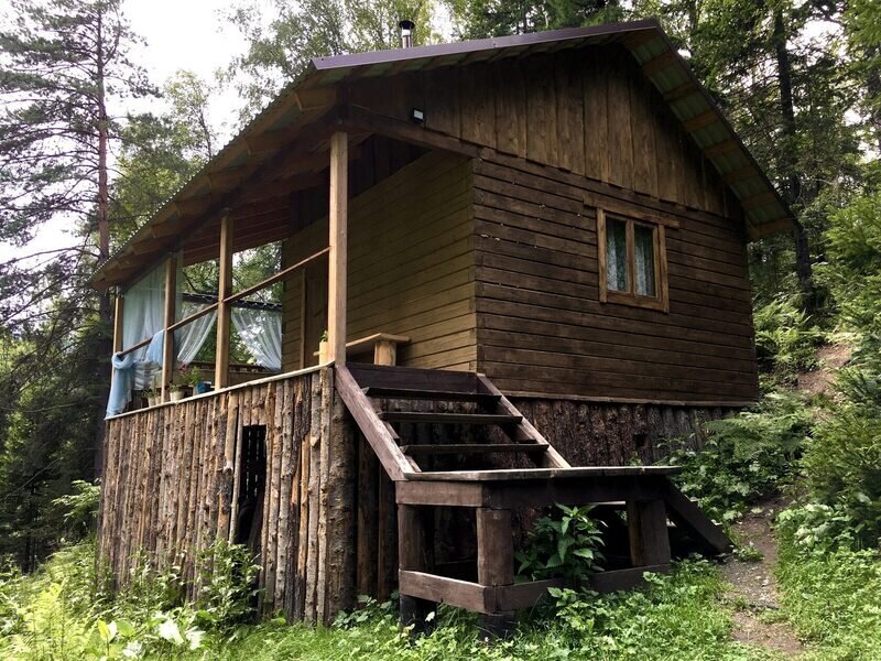 Путешествие с семьейОтзыв о проживании на турбазе Баба ЯгаТурбаза расположена на склоне горы, в лесу, соответственно, для того, чтобы подняться в кафе, общую кухню или выйти на дорогу нужно приложить ряд усилий. Домики расположены изолированно друг от друга, из которых открывается прекрасный вид на Алтайские горы и лес. Проживание в домиках на любой вкус и кошелёк, цены от 2 до 13 тысяч рублей. В некоторых домиках установлены печки-буржуйки, что позволяет их растапливать утром и вечером, создавая романтическое настроение. Отдыхать на турбазе лучше без детей, так как крытые склоны могут привести к их падению, что и произошло с одной семейной парой. В кафе на турбазе кормят вкусно, но не так дёшево, хотя следует признать, что значительно дешевле в других кафе на Артыбаше.
