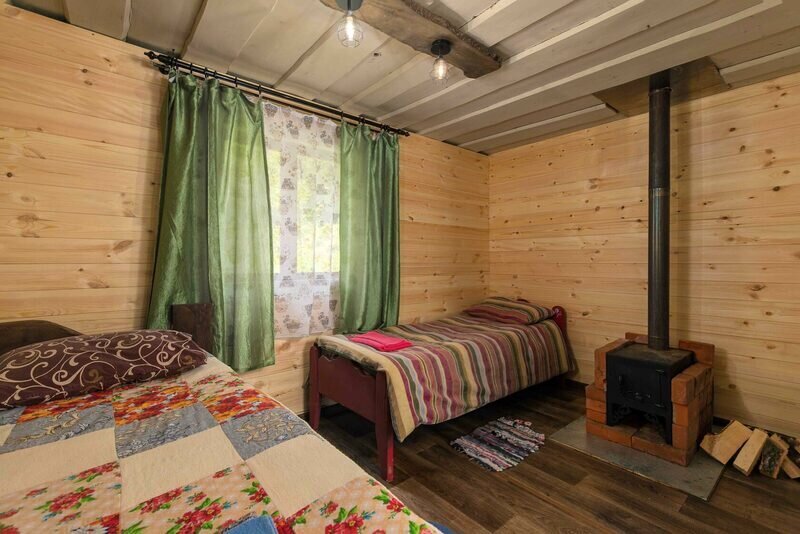 Две раздельные комнаты, в каждой две односпальные кровати. Туалет и душ общий. Предусмотрено отопление. Возле дома мангал.