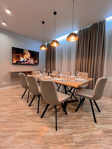 Дом для компаний от 4 до 12 человек в пятницу и субботу, в праздничные и предпраздничные дни (максимальная вместимость дома 15 человек).
