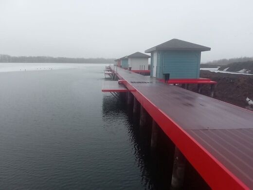 На территории имеется стоянка для автомобилей и лодок, пруд, огороженная лесная зона для прогулок и отдыха, песчаный пляж, зона мангала и причал для лодок и катеров. Для проживания предоставляются яркие и комфортные домики на воде.