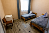 Комната №3: две односпальные кровати, двухъярусная кровать, ортоп. матрасы, чистое постельное бельё, стол, вешалка.