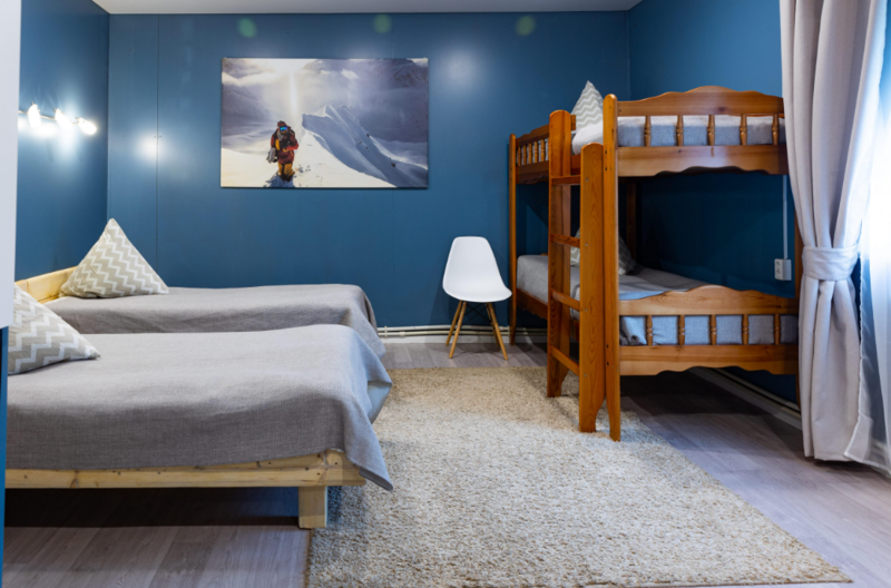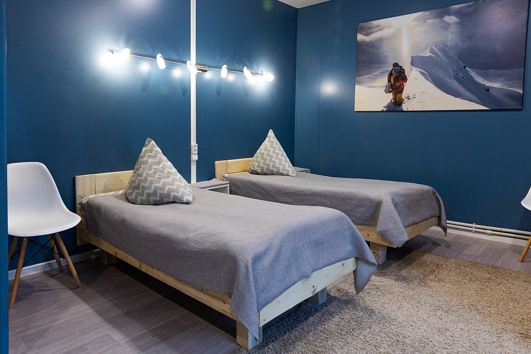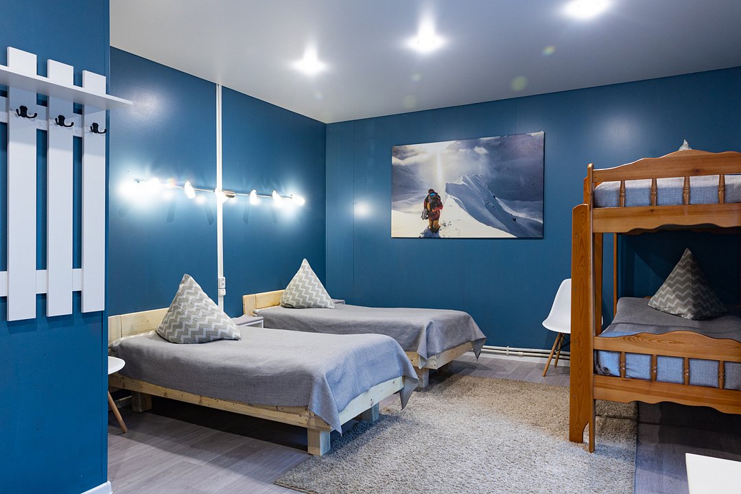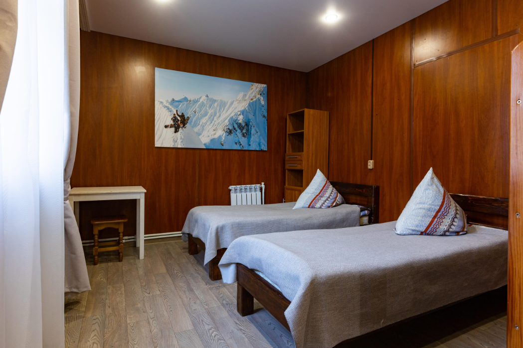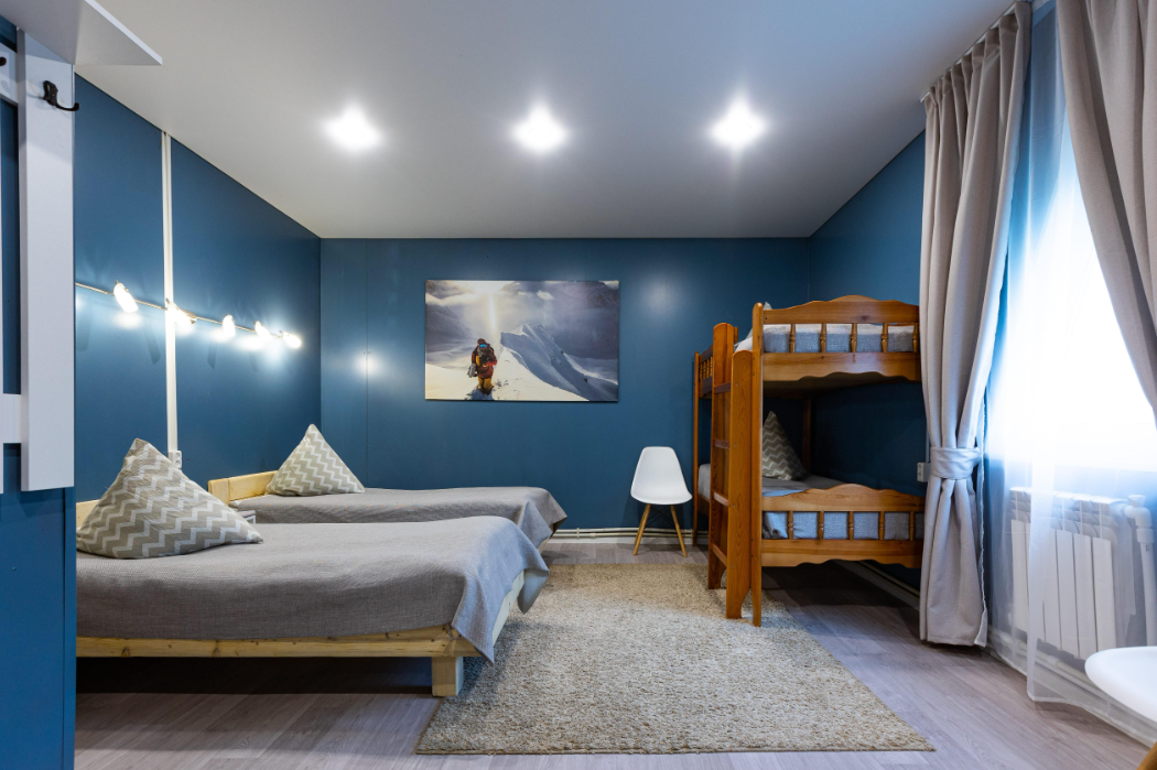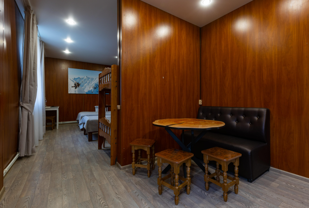 Из номера открывается потрясающий вид на горы Урала. Спальные места – двуспальная кровать, две больше двухъярусные кровати. Номер расположен на 3 этаже.