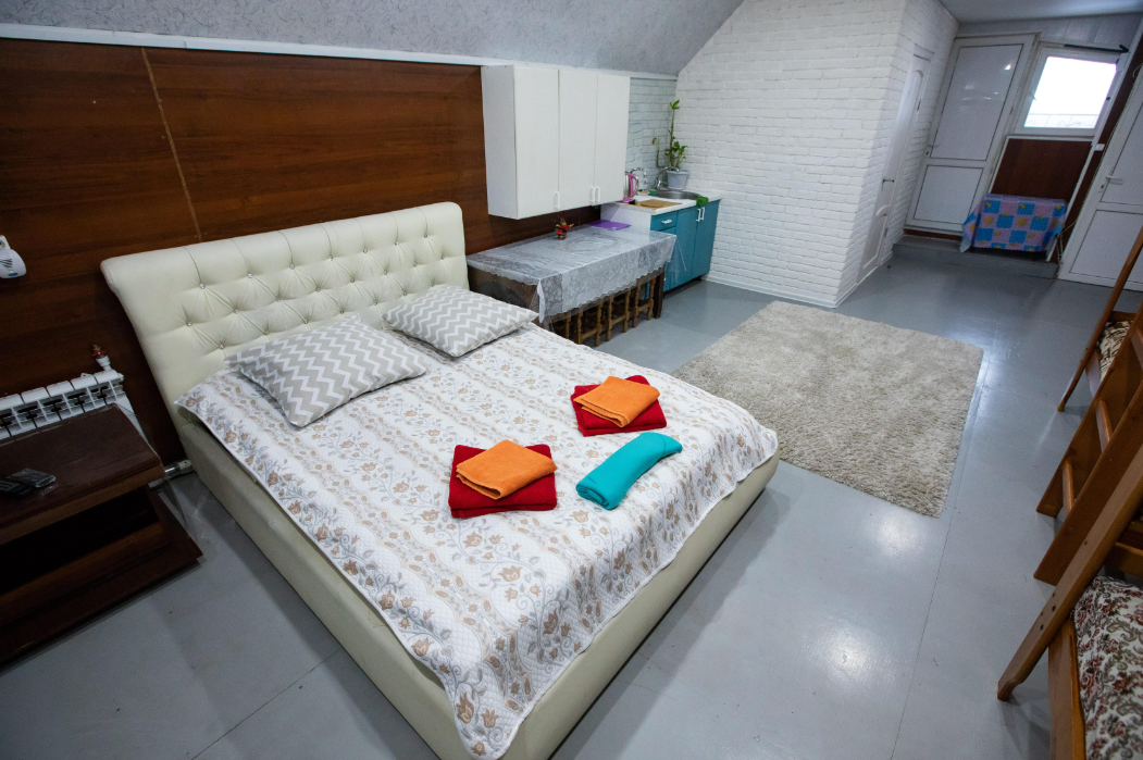 Апартаменты Мансарда с кухней и балконом – уютный однокомнатный номер общей площадью 40 кв. м с возможностью размещения до 6 гостей.