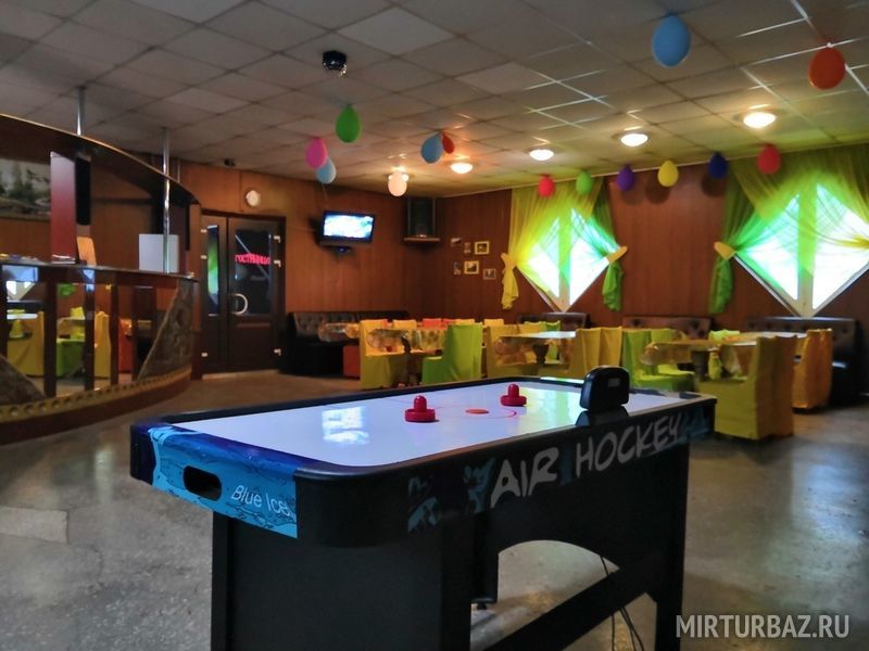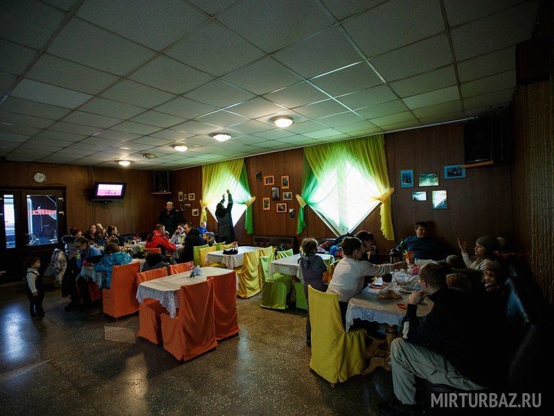 Для гостей базы работает кафе с возможностью заказа обеда в номер. Для желающих готовить самостоятельно есть общая кухня.