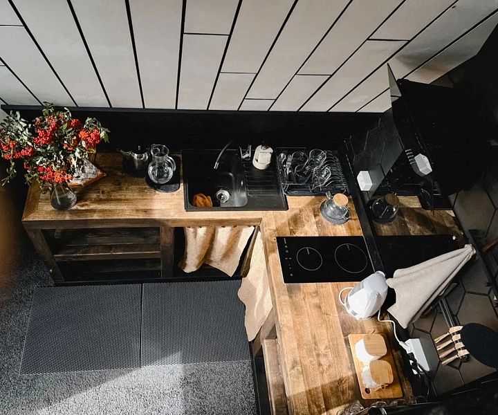 В доме: гостиная, совмещенная с кухней; санузел; второй этаж с двухместным лофтом. Все условия для комфортного проживания и отдыха.