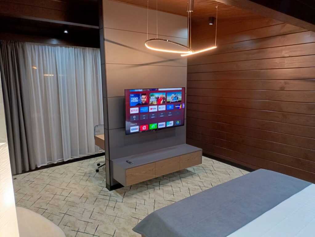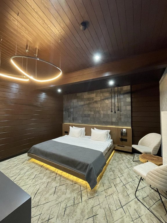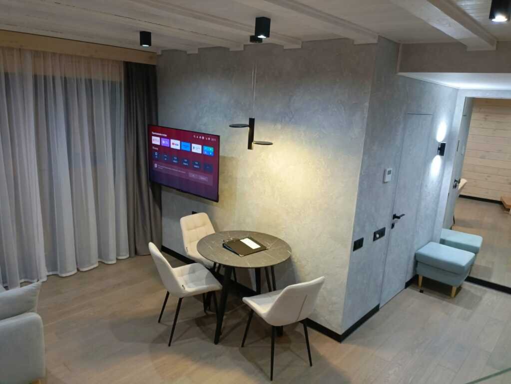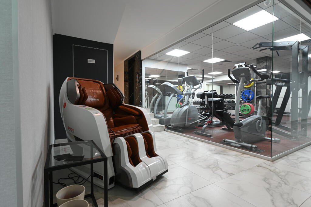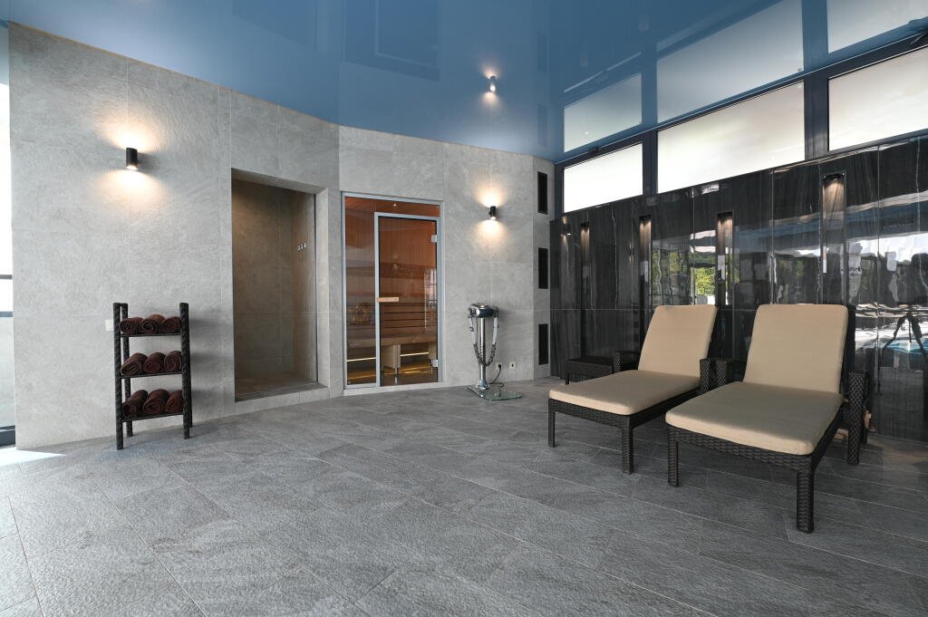 К услугам гостей — оборудованный тренажёрный зал, массажное кресло, шунгитовая комната, плавательный бассейн с противотоком и гидромассажем, сауна, кинотеатр, лифт.