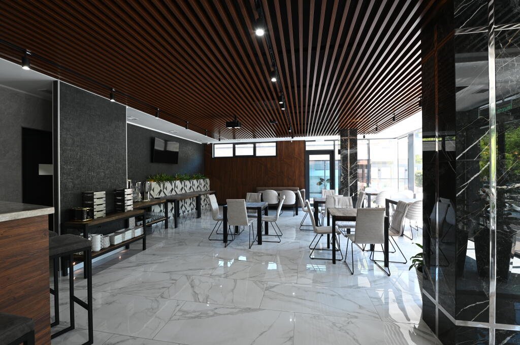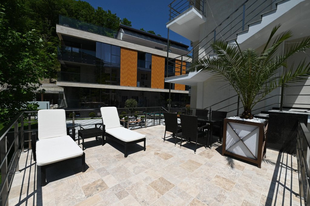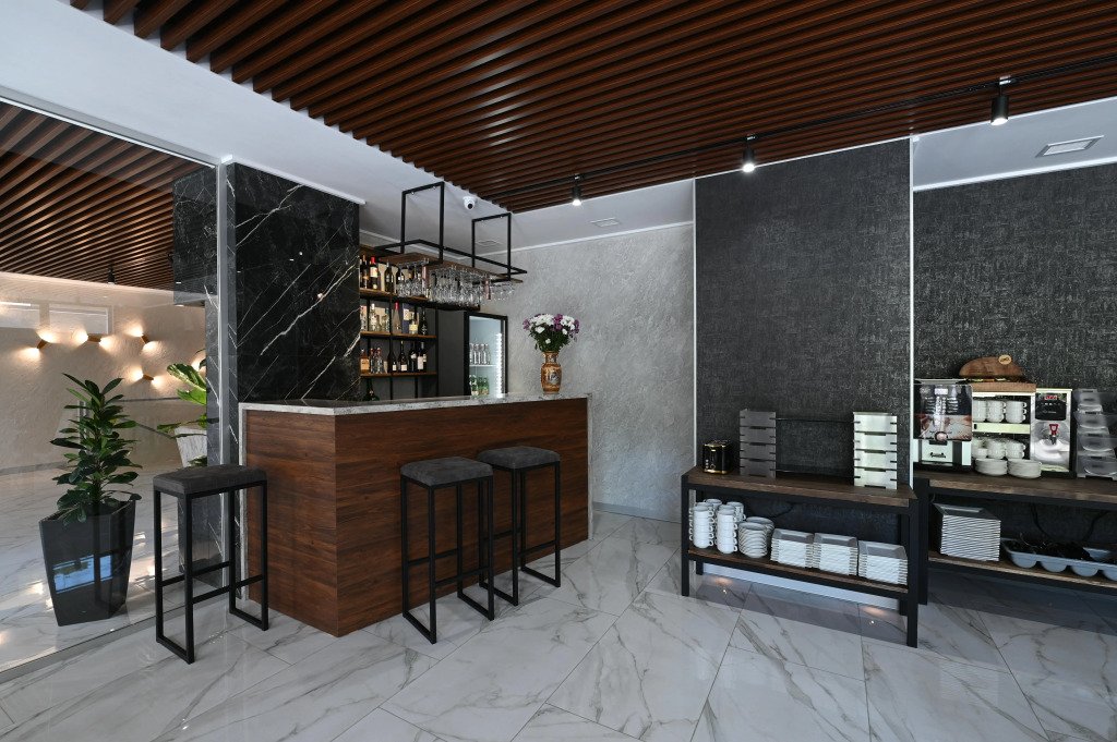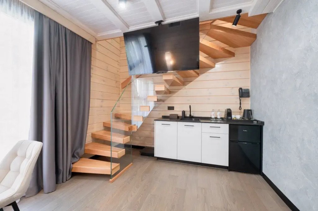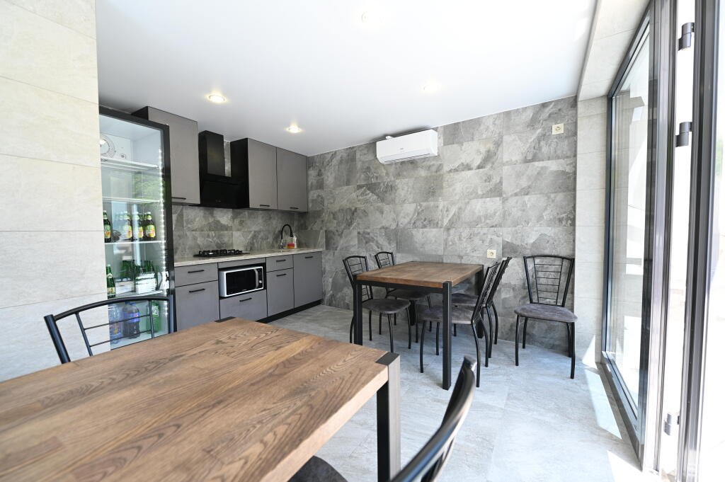 К услугам гостей — оборудованный тренажёрный зал, массажное кресло, шунгитовая комната, плавательный бассейн с противотоком и гидромассажем, сауна, кинотеатр, лифт.