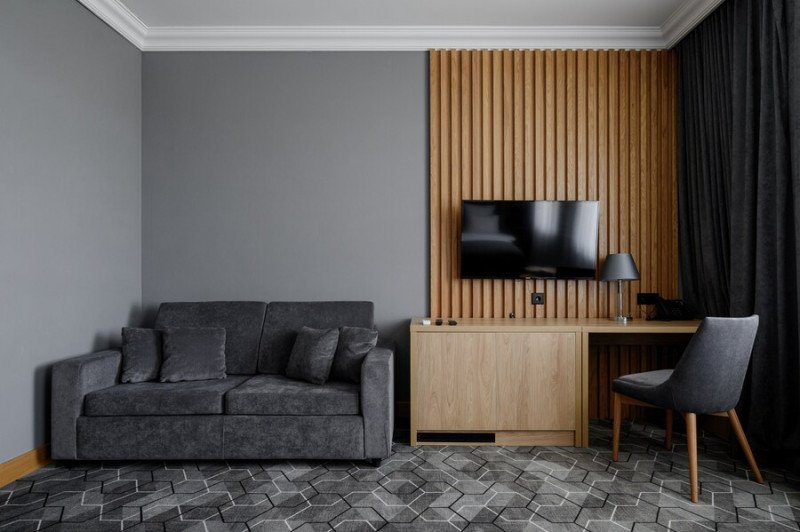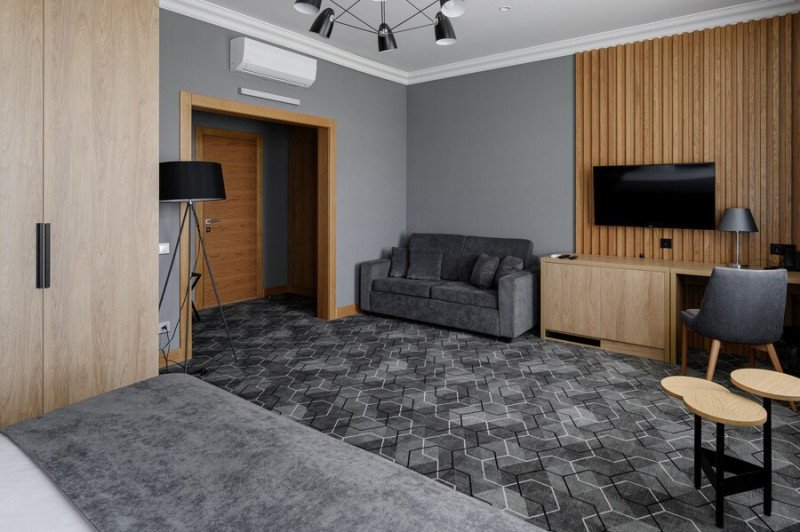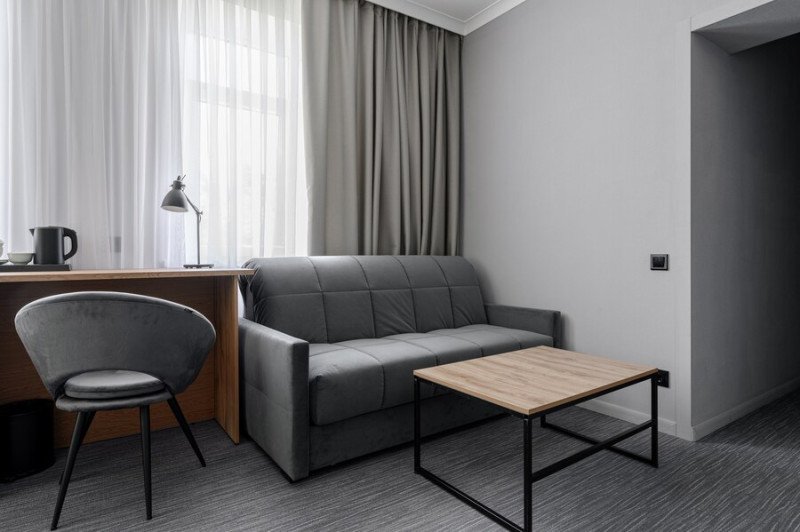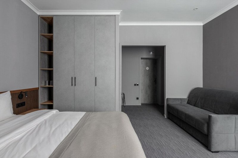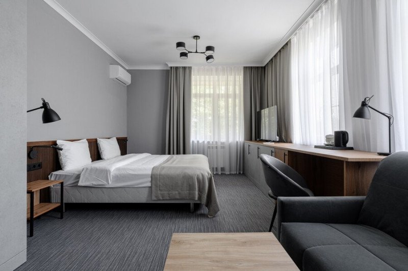 Комфортабельные номера с современной функциональной мебелью. В номерах расположены диваны, которые можно использовать как полноценное спальное место.